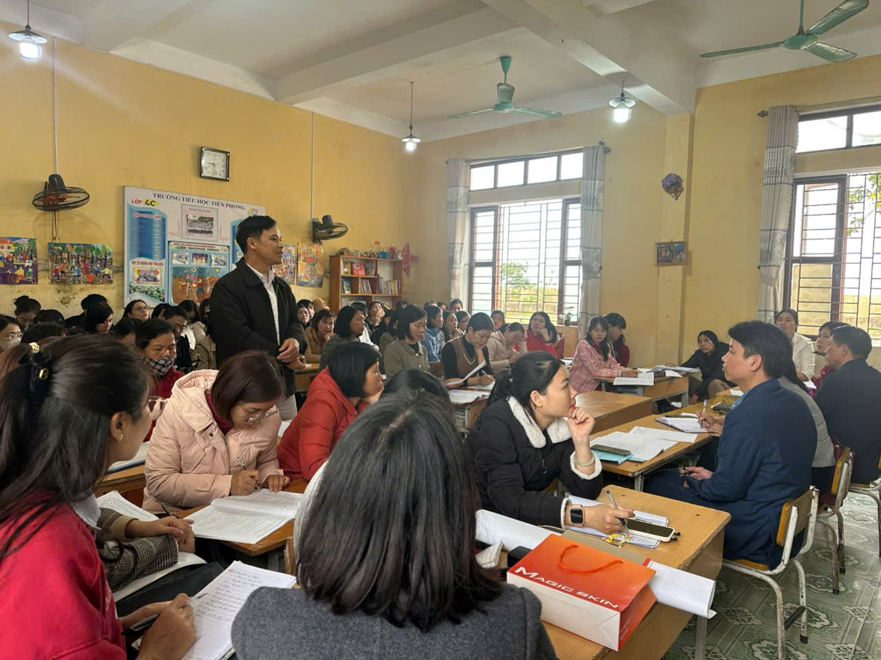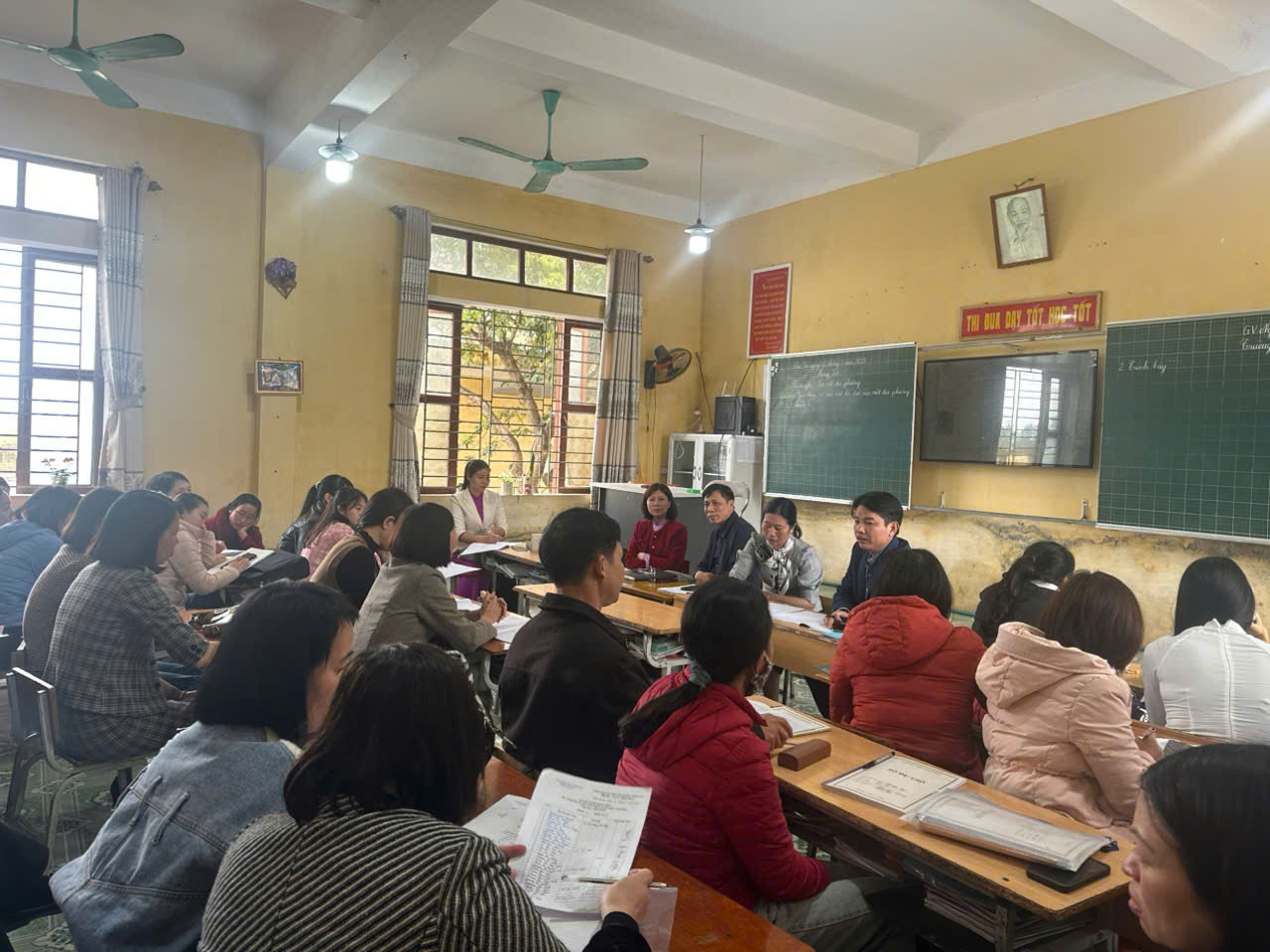 Giải quyết các vấn đề chuyên môn: Các giáo viên thảo luận và đưa ra giải pháp cho những vấn đề, khó khăn trong quá trình giảng dạy, như cách thức quản lý lớp học, xây dựng môi trường học tập tích cực và phát triển các kỹ năng sống cho học sinh.
