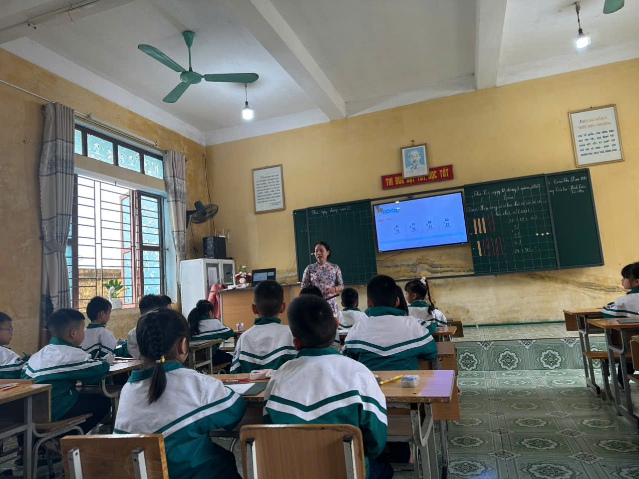 Tham gia giảng dạy trong buổi sinh hoạt cụm lần này trường Tiểu học Vĩnh Tiến – Cổ Am có cô giáo Trần Thị Lan – Giáo viên lớp 1 đẫ lên lớp 1 tiết Toán : Phép cộng số có hai chữ số với số có hai chữ số